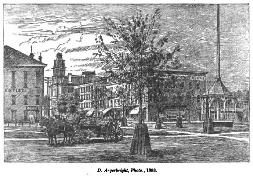 it in 1886, 1887, 1888, 1889, and 1890. Transcribed by MaryAlice Schwanke MIAMI. MIAMI COUNTY was formed from Montgomery, January 16, 1807, and Staunton made the temporary seat of justice. The word Miami, in the Ottawa language, is said to signify mother. The name Miami was originally the designation of the tribe who anciently bore the name of "Tewightewee." This tribe were the original inhabitants of the Miami valley, and affirmed they were created in it. East of the Miami the surface is gently rolling, and a large proportion of it a rich alluvial soil; west of the Miami the surface is generally level, the soil a clay loam and better adapted to small grain and grass than corn. The county abounds in excellent limestone and has a large amount of water power. In agricultural resources this is one of the richest counties in the State. Area about 400 square miles. In 1887 the acres cultivated were 137,922 in pasture, 7,159; woodland, 23,601; lying waste, 2,338; produced in wheat, 956,331 bushels; rye, 1,678; buckwheat, 87; oats, 454,112; barley, 27,349; corn, 1,520,000; broom-corn, 9,690 lbs. brush; meadow hay, 8,175 tons; clover hay, 7,806; flax, 833,800 lbs. fibre; potatoes, 47,593 bushels; tobacco, 463,120 lbs.; butter, 536,213 ; cheese, 13,400; sorghum, 4,731 gallons; maple syrup, 8,627; honey, 6,225 lbs.; eggs, 433,940 dozen ; grapes, 26,635 lbs.; sweet potatoes, 1,927 bushels ; apples, 1,395; peaches, 102; pears, 831; wool, 22,088 lbs.; milk cows owned, 6,033. Ohio mining statistics 1888 : Limestone, 8,635 tons burned for lime; 73,096 cubic feet of dimension stone ; 45,27 5 cubic yards of building stone; 5,007 cubic yards for piers or protection purposes; 27,582 square feet of flagging; 37,850 square feet of paving; 30,558 lineal feet of curbing; 8,077 cubic yards of ballast or macadam. School census, 1888, 12,038; teachers, 266, Miles of railroad track, 121 .